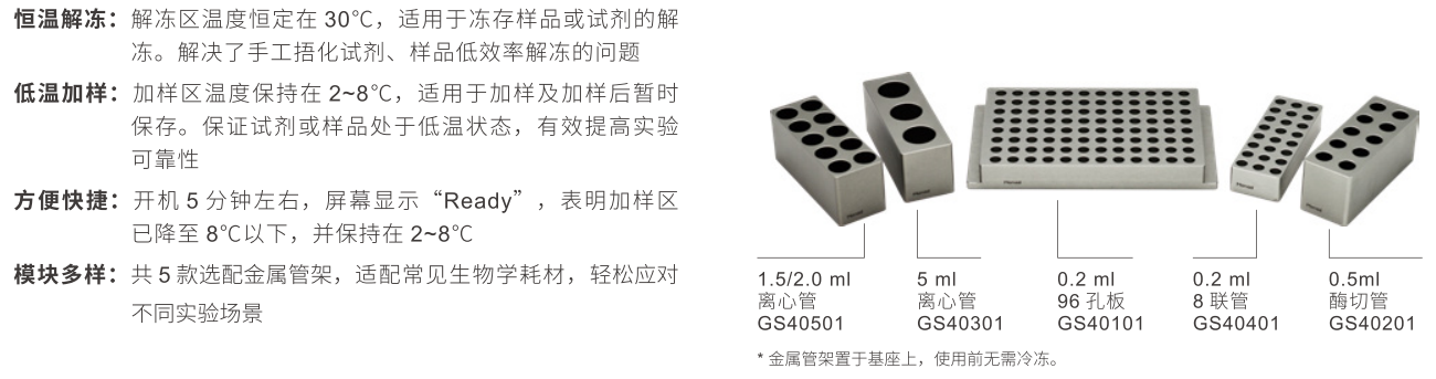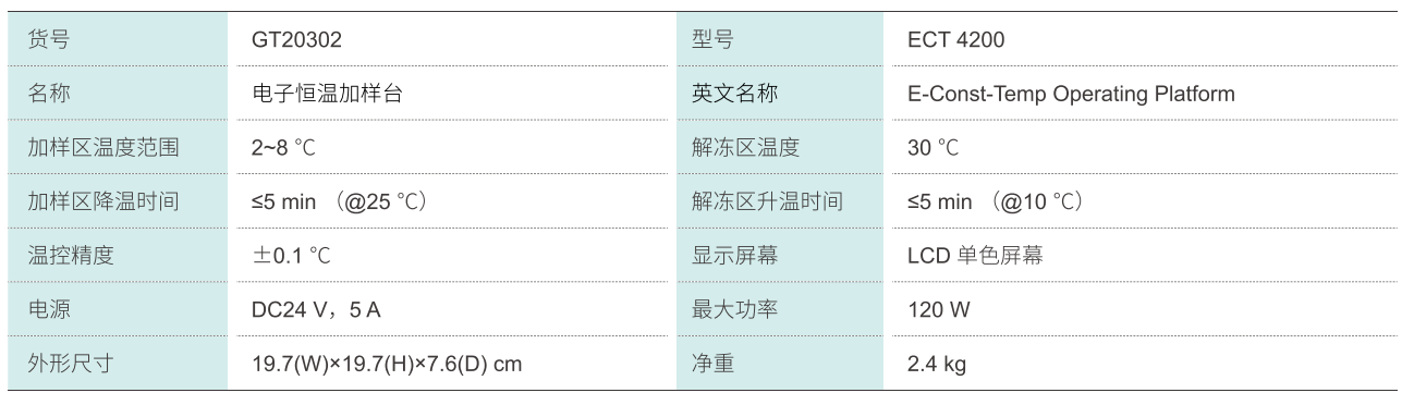 ECT4200電子恒溫加樣臺適用于生物學(xué)實(shí)驗(yàn)中低溫加樣及試劑、樣本的解凍和臨時(shí)低溫儲存。儀器具有兩個(gè)預(yù)設(shè)溫度。不同的區(qū)域:解凍區(qū)溫度恒定在30℃,用于解凍試劑、樣本;加樣區(qū)溫度保持2~8℃,用于低溫實(shí)驗(yàn)。搭配金屬管架,可適配常見生物學(xué)耗材。LCD液晶屏簡明顯示儀器當(dāng)前狀態(tài)。一鍵開機(jī),操作便捷。
