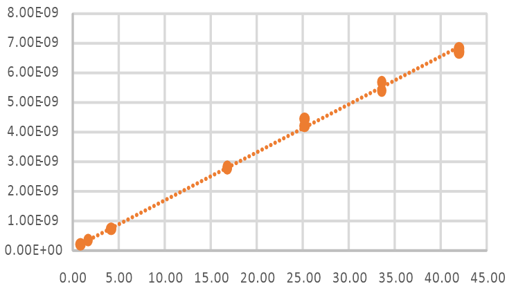 圖3 利用已知CH4濃度和測(cè)量出來的信號(hào)值進(jìn)行擬合曲線,進(jìn)而測(cè)量未知水體中CH4濃度